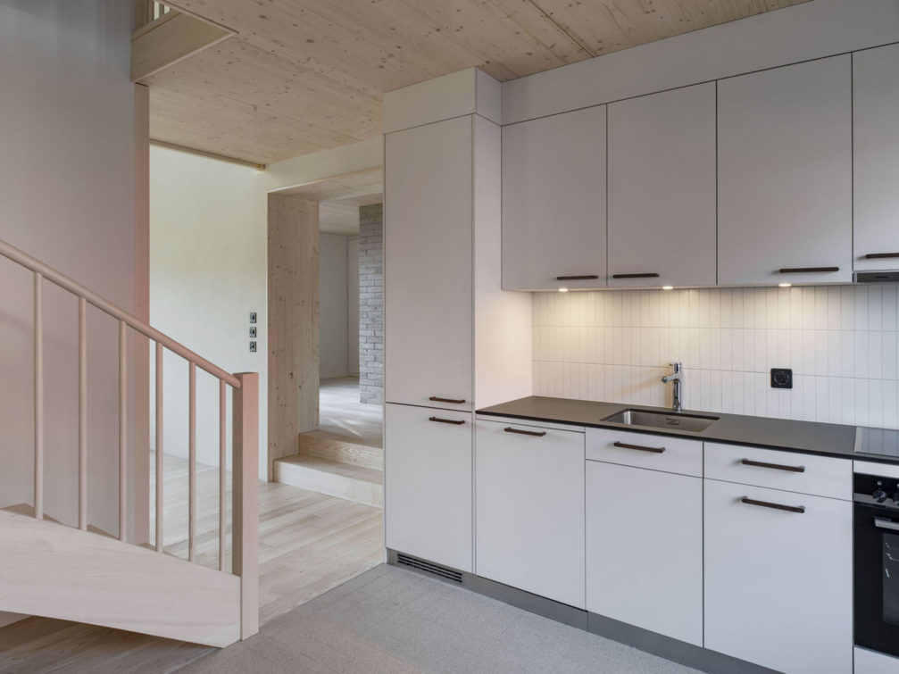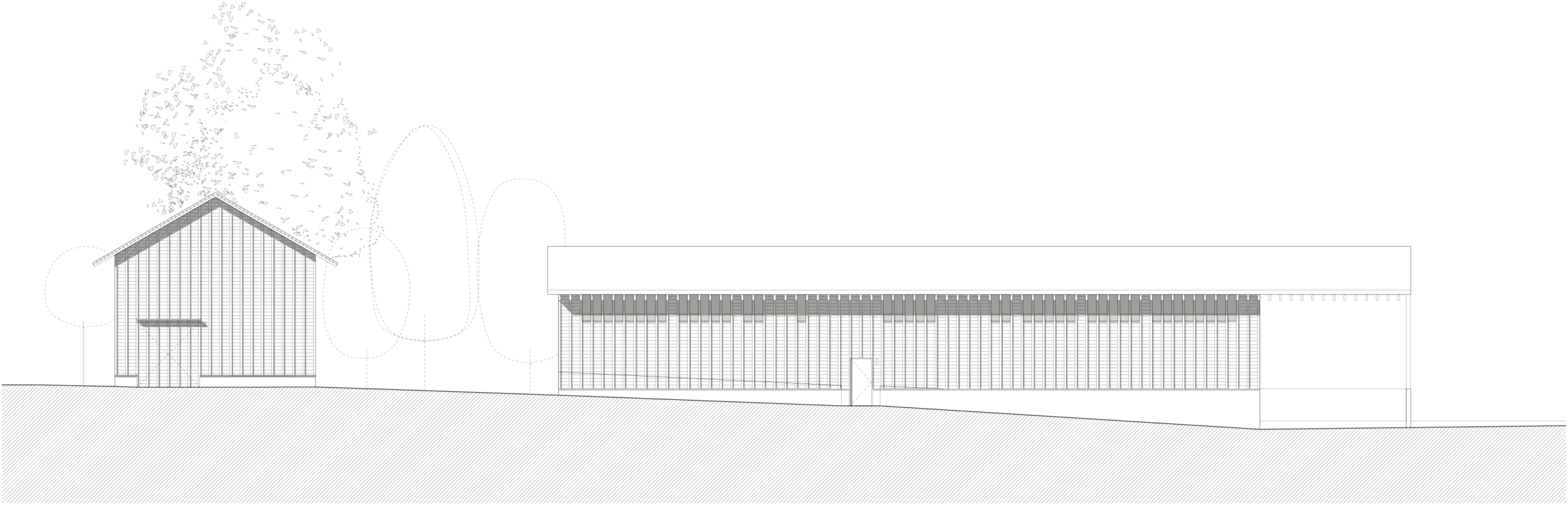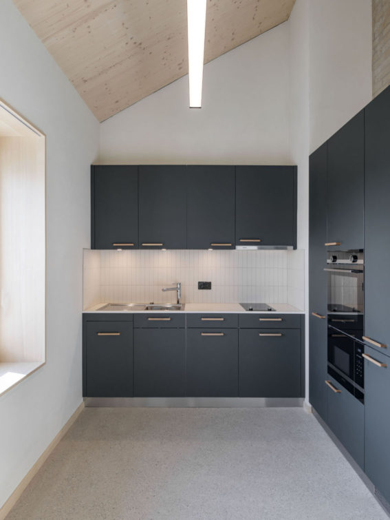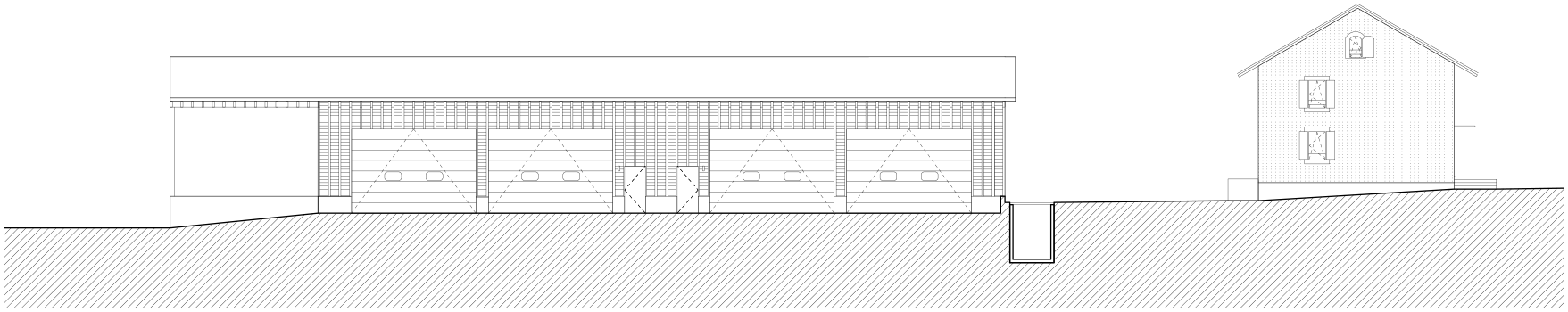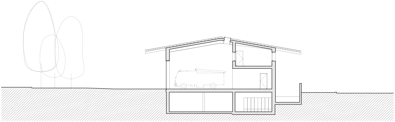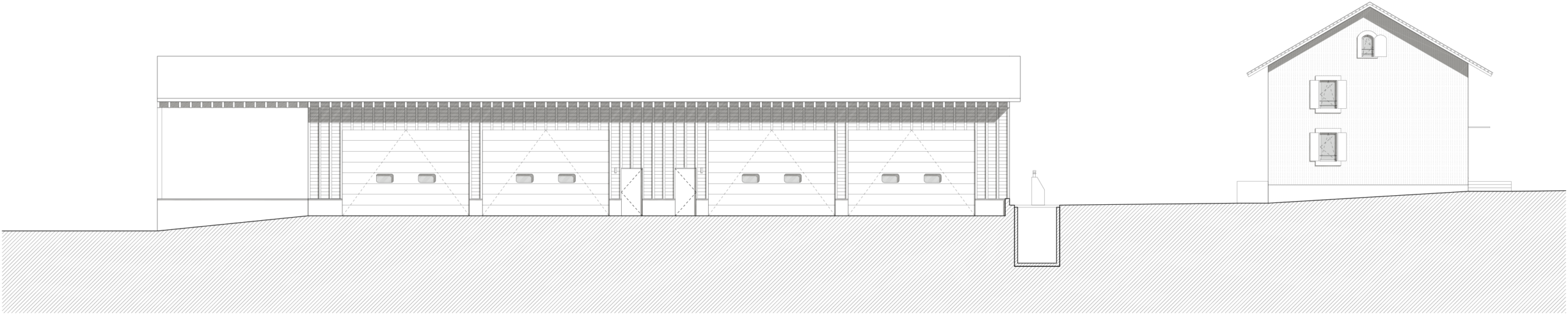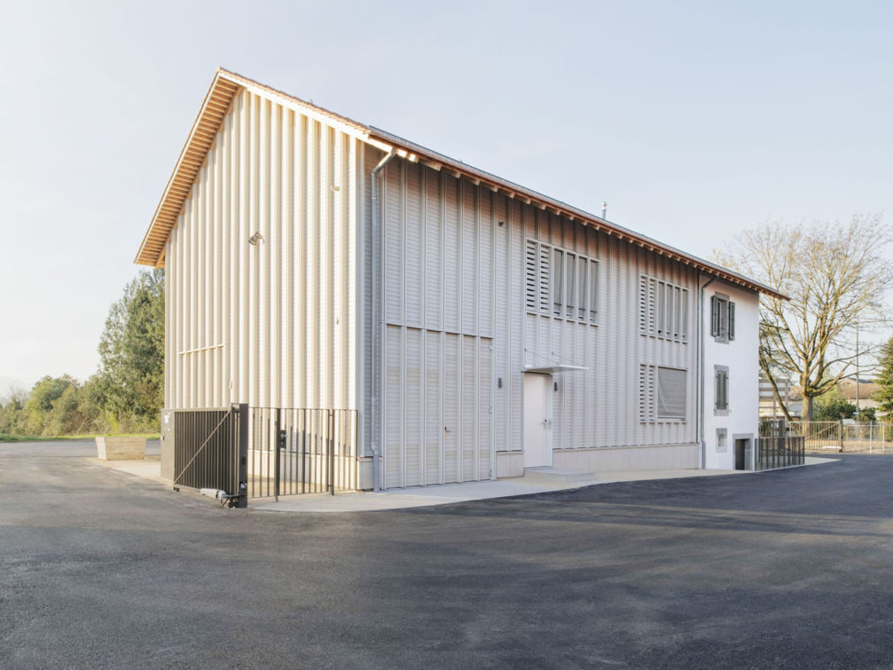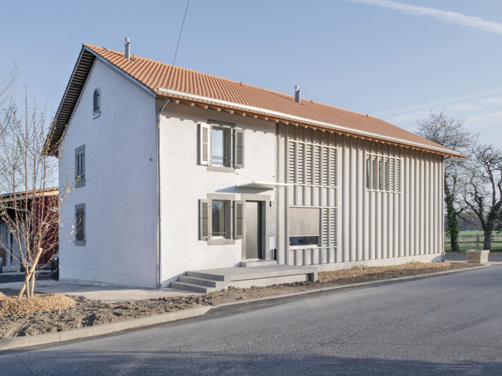 La ferme, bâtie en 1883, accueille un logement familial indépendant, organisé en demi-niveaux. Dans un prolongement traité de manière contemporaine, les locaux du personnel de la voirie occupent deux étages, tandis qu’un grand local de stockage termine la construction, à la manière de la grange d’antan, aujourd’hui supprimée.